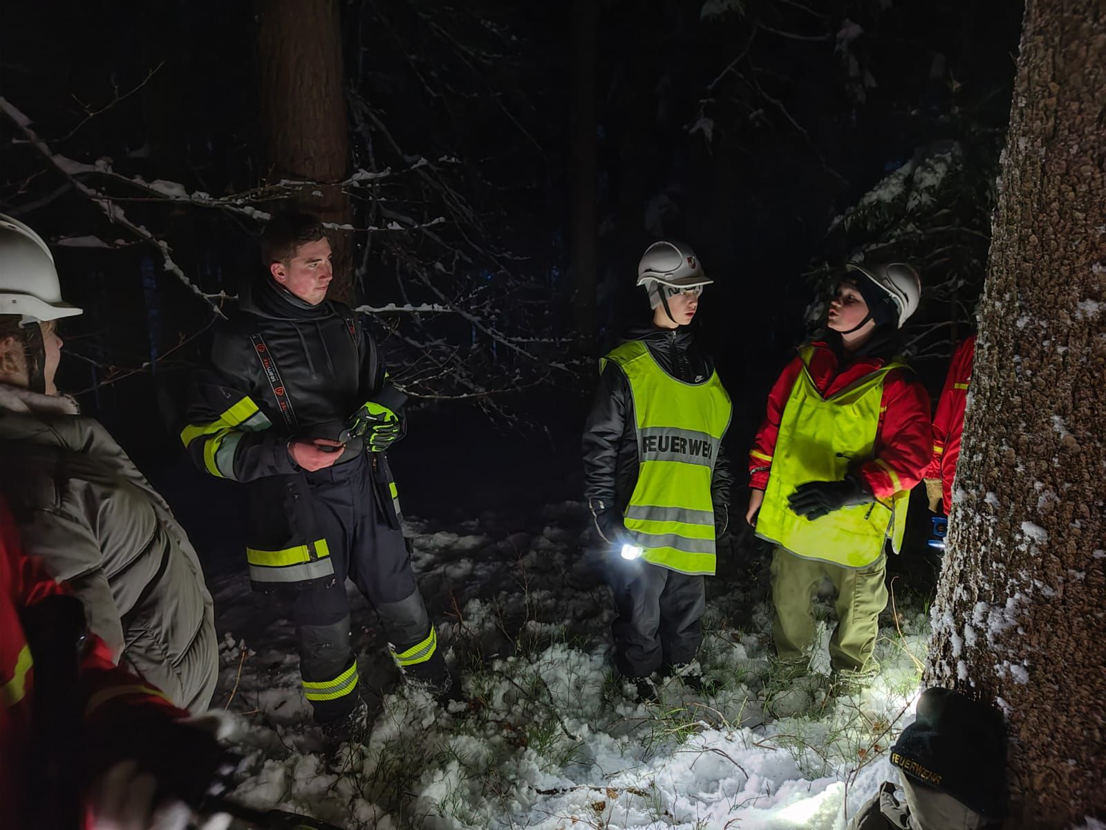 Bei der Einsatzleitung wurde zunächst alles genau besprochen. Trupps wurden eingeteilt sowie Suchrichtungen und Routen festgelegt. Während des Einsatzes hielt der Einsatzleiter ständig Funkkontakt zu den Trupps und erkundigte sich regelmäßig, ob alles in Ordnung sei. Nach etwa 20 Minuten konnte das vermisste Kind im Wald gefunden werden. Sofort wurde mit der Erstversorgung vor Ort begonnen, anschließend wurde das Kind mithilfe des Bergebretts zur Einsatzleitung gebracht und dort – übungsmäßig – dem Roten Kreuz übergeben.