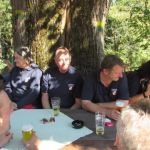 Kaum oben angekommen, erreichte uns um 12:30 der Alarm eines Wohnhausbrandes in Treffelsdorf. Sofort waren die Kameraden auf den Weg zum Brandherd um das Feuer zu löschen. Nach knapp 2 Stunden hieß es „Brand aus!“. Als die Aufräumtätigkeiten und das Verstauen des Geräts fertiggestellt waren, fand man sich bald darauf wieder am Christophberg ein, um gemeinsam mit dem Rest der Wandertruppe gebührend den Nachmittag ausklingen zu lassen, bevor es wieder bergab ins Tal ging.